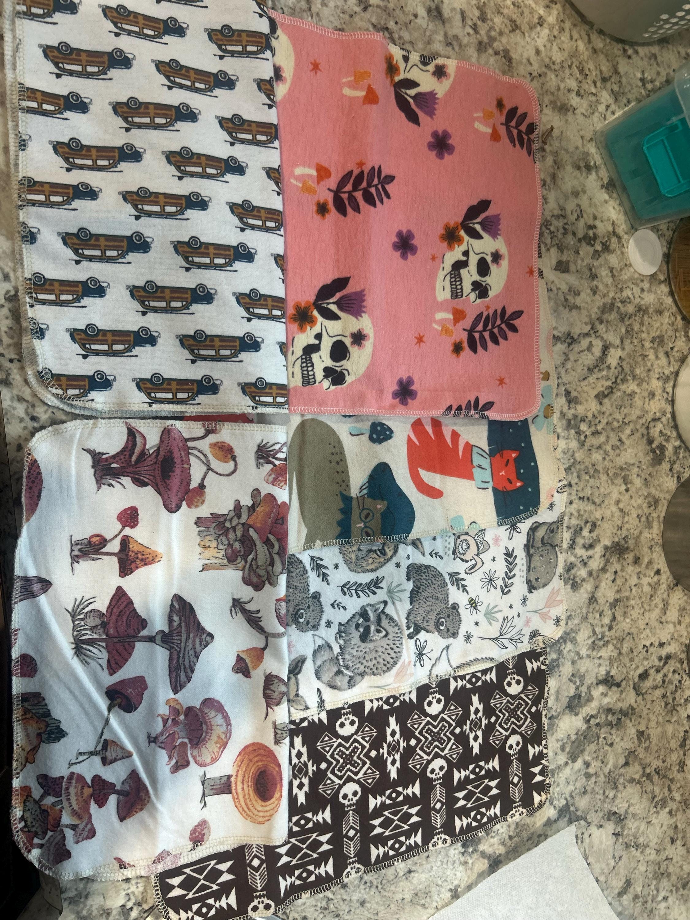 •Material: 100% cotton flannel, single-ply (super absorbent + quick to dry)